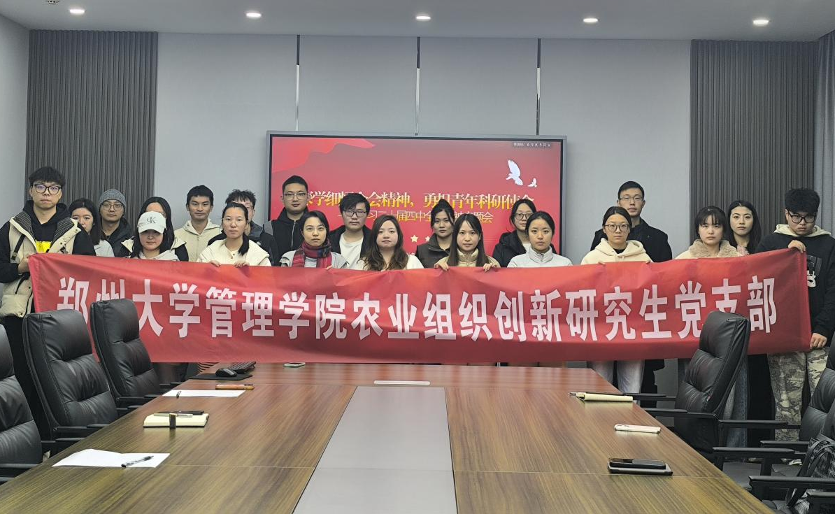 为学习贯彻中国共产党第二十届中央委员会第四次全体会议精神,10月29日上午,管理学院农业组织创新研究生党支部在学院1号楼407会议室召开中共二十届四中全会精神专题学习会。会议由研究生辅导员郭安宁主持,支部全体在校研究生党员参与。