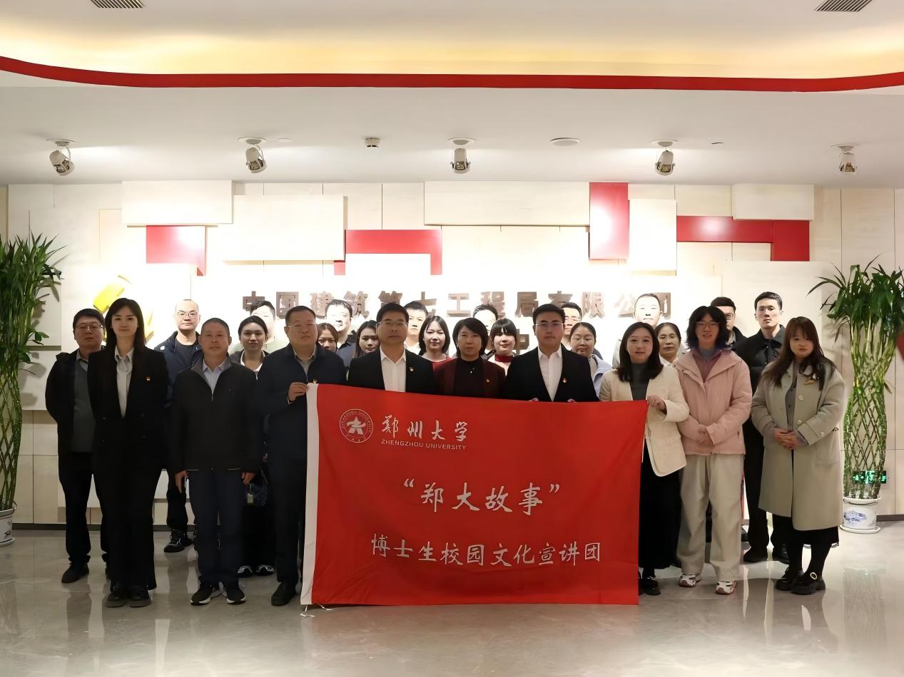 2025年11月14日下午,郑州大学“郑大故事”博士宣讲团应邀走进中国建筑第七工程局有限公司(以下简称“中建七局”),参与其开展的“学精神 凝共识 勇担当 促发展”主题党日活动。宣讲团成员、信息管理学院2025级博士生张国利作了题为《深学笃行党的二十届四中全会精神同心绘蓝图实干创未来》的专题宣讲。郑州金水投资集团党委副书记、纪委书记白志霞,公司党委副书记、工会主席王永欣,华中公司党总支委员、执行总经理闫振及双方党员代表40余人出席。活动由公司党群工作部部长王誉瑾主持。