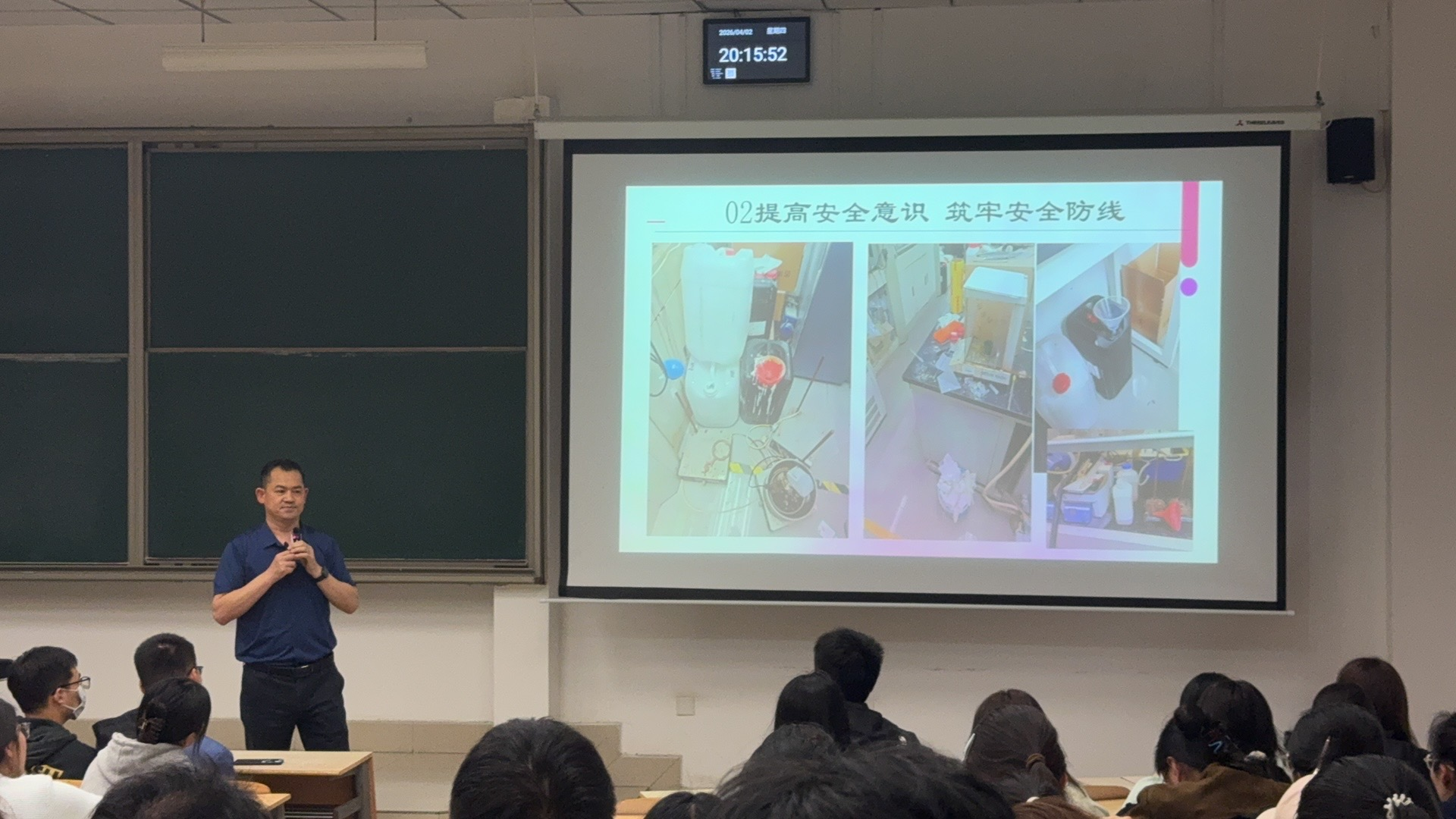 围绕防电信网络诈骗、实验室安全、交通安全三大领域开展多维度教育。结合高校研究生常见诈骗案例和实验室安全事故实例,以“身边事”警示“身边人”,提醒大家绷紧反诈之弦;针对药学实验特点,强调规范操作、危化品管理及应急处置流程,培养严谨细致的实验习惯;同时叮嘱严守交通规则,确保安全稳定地投入科研学习。