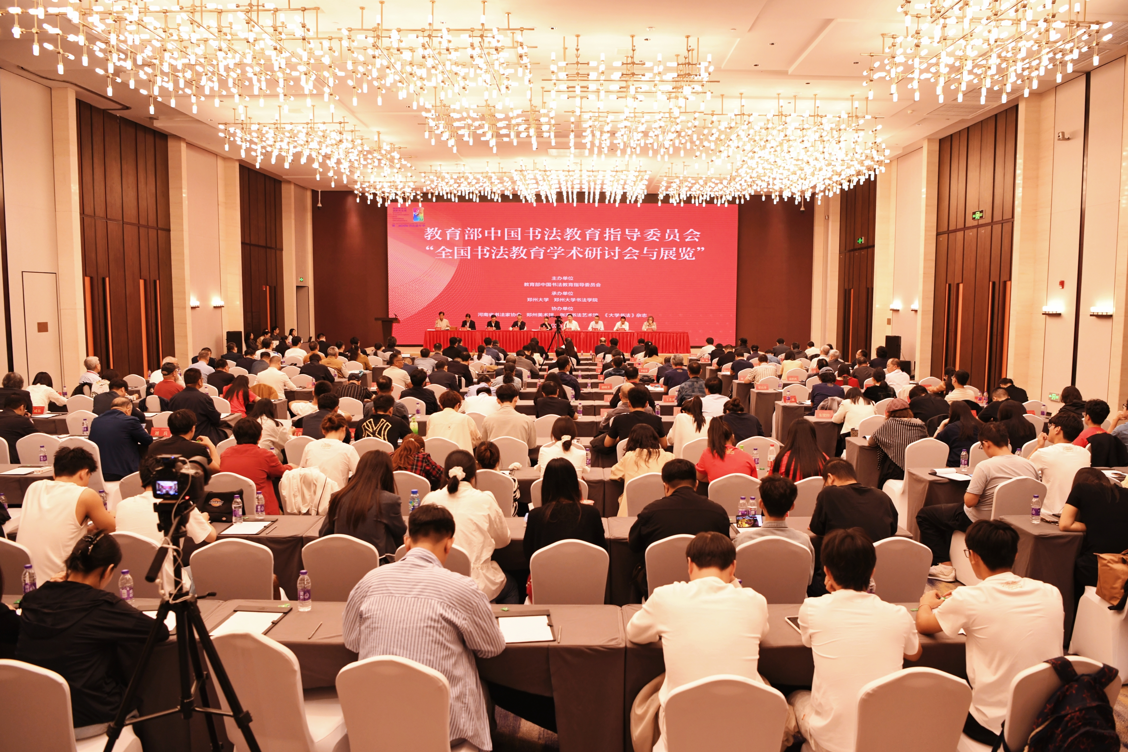 9月20日,由教育部中国书法教育指导委员会主办、郑州大学承办的首届“全国书法教育学术研讨会与展览”在郑州开幕。教育部中国书法教指委主任委员丁向阳,中国文联党组成员、书记处书记、中国书法家协会分党组书记、驻会副主席李昕,教育部原国家副总督学郭振有,河南省教育厅党组成员、副厅长杨光,郑州大学党委书记李成伟,中国书法家协会副主席叶培贵、潘善助,原中国书法家协会分党组副书记、秘书长郑晓华等出席开幕式。郑州大学书法学院师生代表,以及来自全国高校的书法教育专家共150余人参加活动。开幕式由教育部体卫艺司一级巡视员、中国书法教指委副主任兼秘书长郝风林主持。