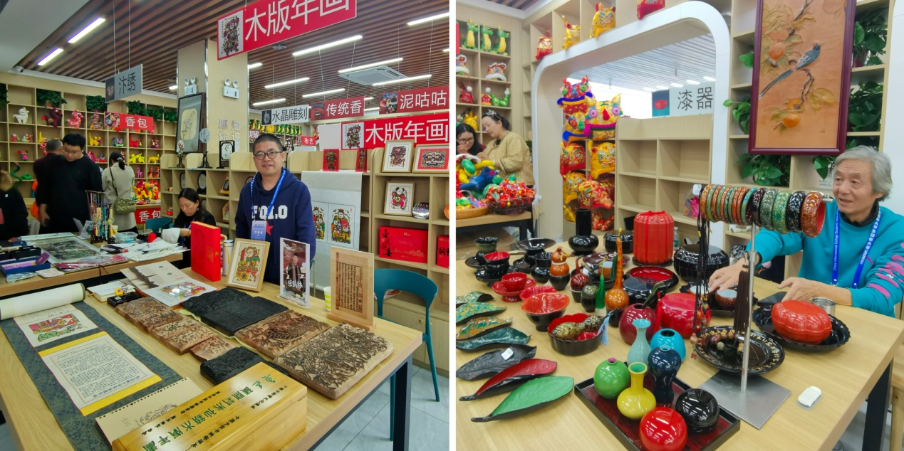 馆外,数十块展板系统呈现各非遗项目的发展脉络,观众扫码即可聆听传承人语音讲解;馆内,传承人精心准备非遗“体验包”,观众可亲手参与制作,在“零距离”互动中完成一场跨越千年的文化对话。
