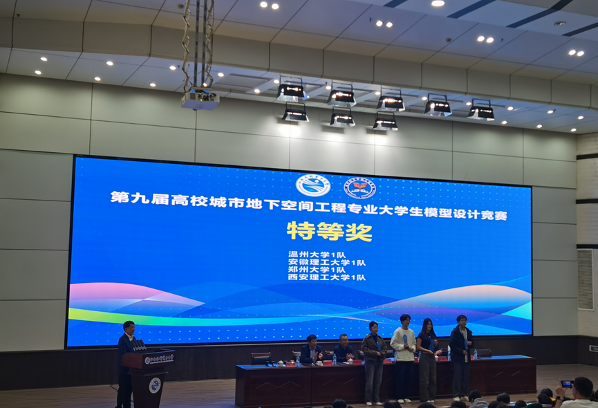 2025年11月14日-16日,第十五届高校城市地下空间工程专业建设研讨会暨第九届高校城市地下空间工程专业大学生模型设计竞赛在江西水利电力大学圆满落幕。我校地下建筑工程系主任李永辉、青年教师王腾飞指导的2023级城市地下空间工程专业两支参赛队伍在比赛中表现优异,分别荣获特等奖和二等奖,展现了我校学生扎实的专业基础与出色的实践创新能力。