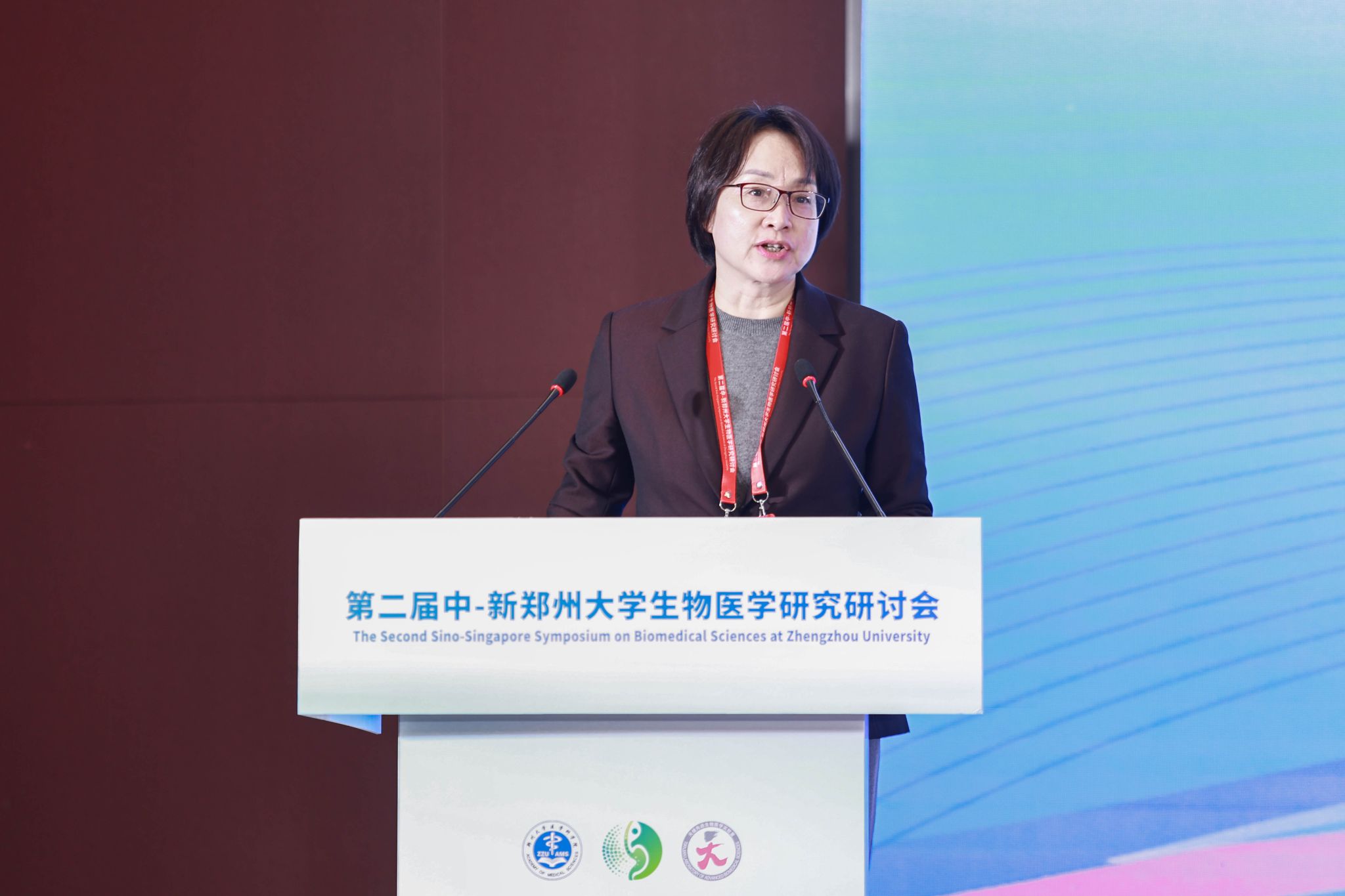 李蓬向远道而来的海内外嘉宾表示热烈欢迎,她介绍了郑州大学整体概况、医学学科建设及科研创新情况。她强调,郑州大学始终锚定国家重大战略需求,紧盯全球生命科学领域学术前沿,坚定不移走开放合作、协同创新之路。本次研讨会是深化中新生物医学领域合作的重要契机,更是汇聚中外智慧、共探科学前沿的重要平台。期待与新加坡伙伴在科研协同、人才共育和成果转化等方面开启更深入的合作新篇章,聚焦代谢性疾病、肿瘤等共性难题,以高水平国际协作凝聚智慧合力,为解决全球健康挑战贡献智慧力量。