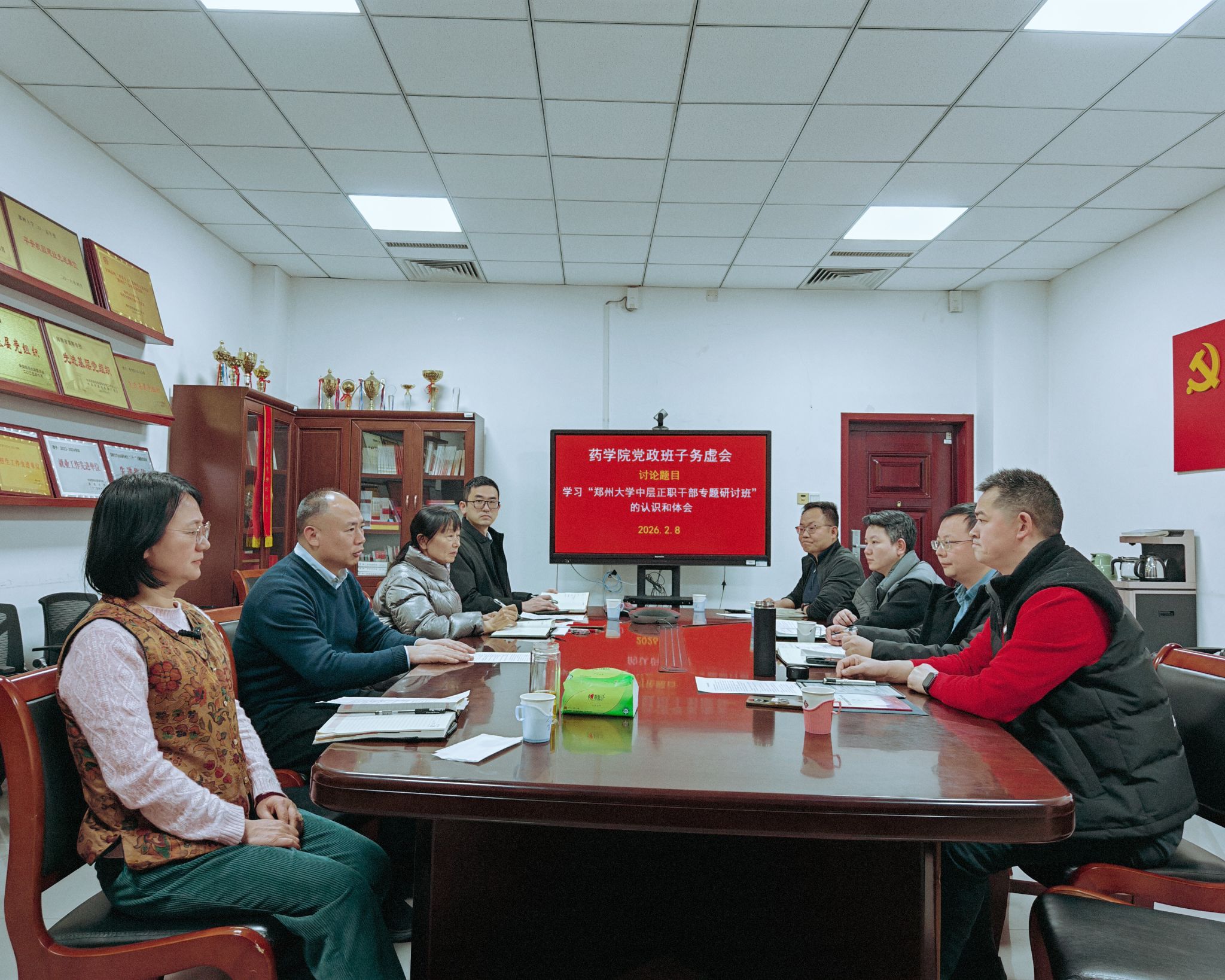 为深入贯彻落实郑州大学世界一流大学建设部署,谋划学院2026年高质量发展路径,凝聚班子共识、破解发展难题,2月8日,郑州大学药学院组织召开2026年党政班子务虚会。会议由学院党委书记樊卫华主持,学院全体领导班子成员参会,围绕学院发展重大议题深入研讨、共话未来。