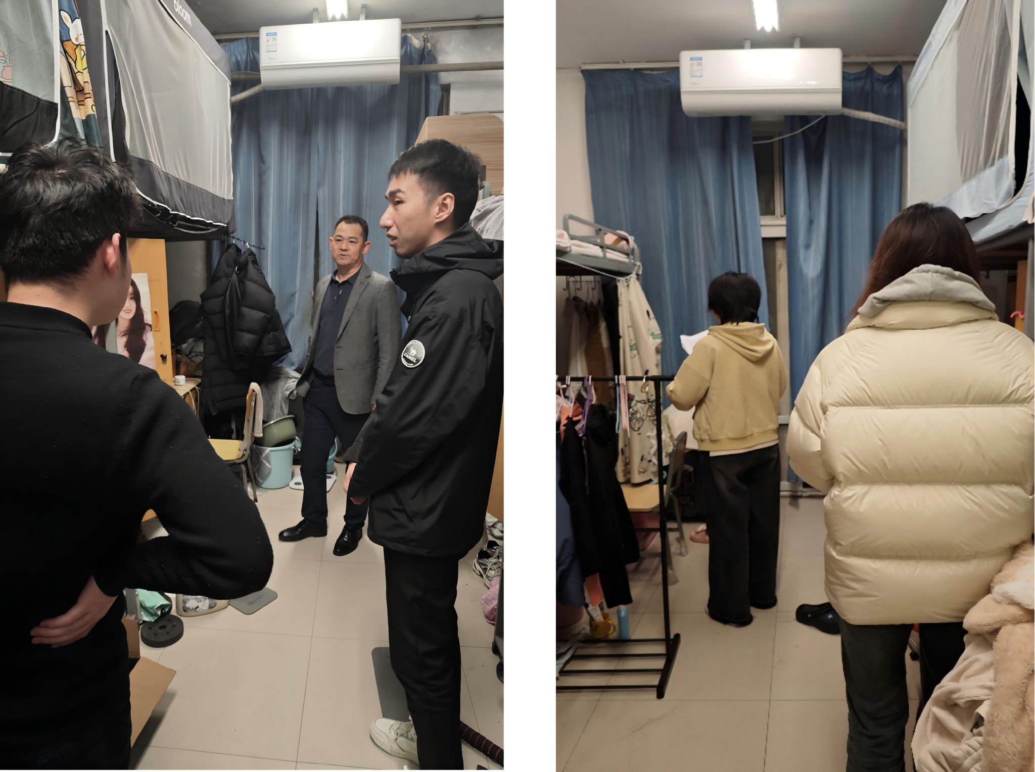 见面会结束后,学院研工队伍(党委副书记、团委书记、辅导员)与学生干部分组深入研究生宿舍,延续 “面对面” 交流模式,深入了解研究生的住宿和生活情况,将思想引领与人文关怀精准送达。