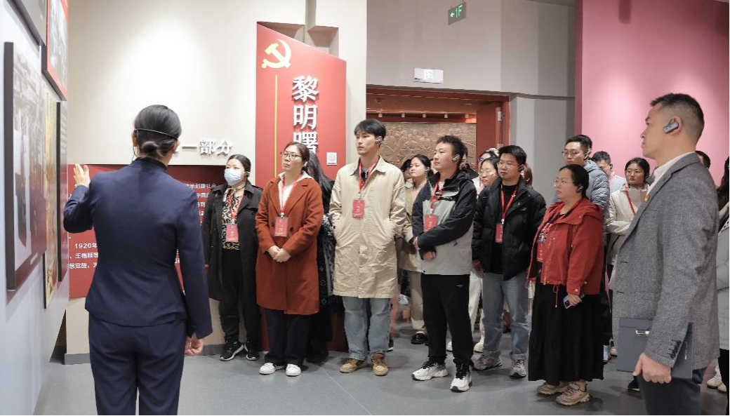 上午,师生们参观了河南第一个党组织——中共洛阳组诞生纪念馆。作为河南工人运动的重要发源地,中共洛阳组诞生纪念馆承载着中原大地早期革命的红色记忆。师生党员在讲解员引导下,依次参观“黎明曙光,思想觉醒”“工运怒涛,陇海风暴”“初心启航,烛照强行”“薪火相传,铸就辉煌”四大展厅。从泛黄的革命传单到锈迹斑斑的罢工工具,从详实的文字史料到生动的场景复原,师生们驻足凝视、细致聆听,深入了解中共洛阳组作为河南第一个党组织的诞生历程,深刻感悟陇海铁路工人大罢工中“敢为人先、顽强斗争”的革命精神。参观过程中,教师党员结合革命先烈“为人民谋幸福”的初心,向学生阐释了当代药学人“为健康护航”使命的精神传承,引导学生将个人科研方向与国家和人民的需要紧密结合,让青春在奉献中绽放光彩。