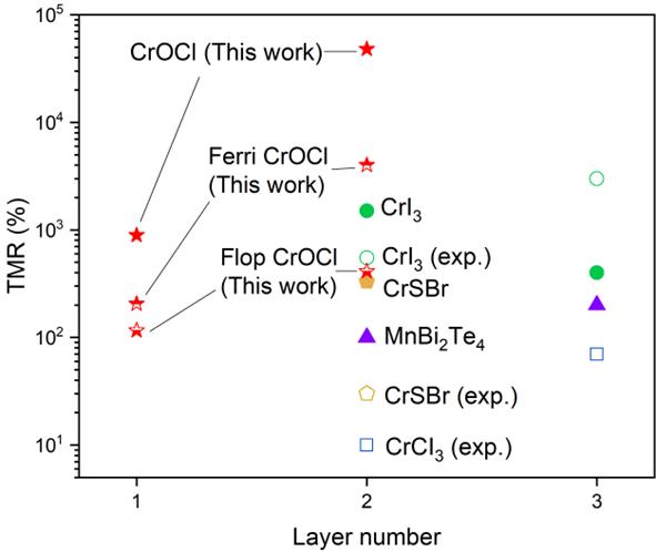 图2 不同范德华反铁磁隧穿结中层数依赖的TMR