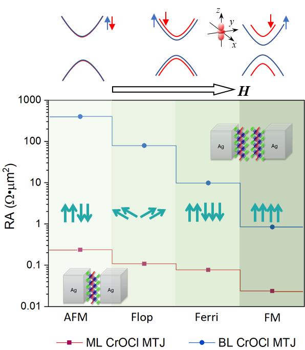 图1 单/双层CrOCl磁隧道结的面电阻演化