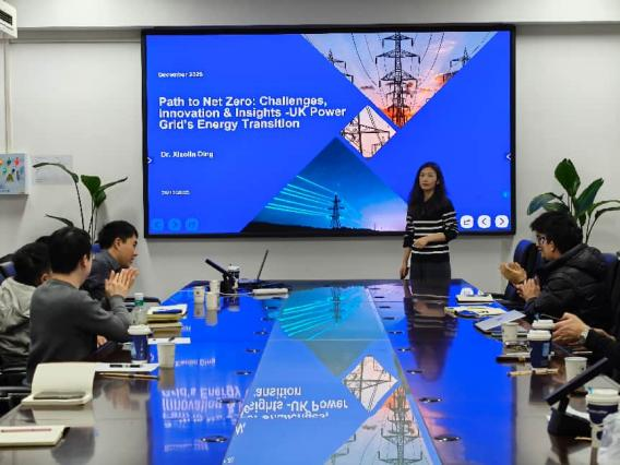 英国国家电网科技部总工丁笑琳博士作了题为《零碳之路:英国电网迈向2050能源转型的挑战与科技创新》的专题报告,系统介绍了英国电网能源结构转型过程中为实现2050净零碳排放目标所遇到的挑战、开展的工作以及取得的创新成果,重点剖析了系统惯量及短路容量衰减、系统稳定性风险、系统潮流调节能力等方面的创新工作。英国纽卡斯尔大学Vladimir Terzija教授做了题为《Digital Substations and Data Science for Data Centre Integration in Net-Zero Power Grids》的学术报告,深入探讨了人工智能如何重塑电网运行与控制模式,从而推动数字孪生理念及广域监测架构的发展。丁笑琳博士、Vladimir Terzija教授、李奇教授与参会师生就前沿技术、国际合作和人才培养等进行了深入交流,我院院长程显教授代表学院向两位专家赠送学校纪念品。会后专家参观了我院河南省输配电装备与电气绝缘工程技术研究中心、河南省电力电子与电力系统工程技术研究中心等实验室。