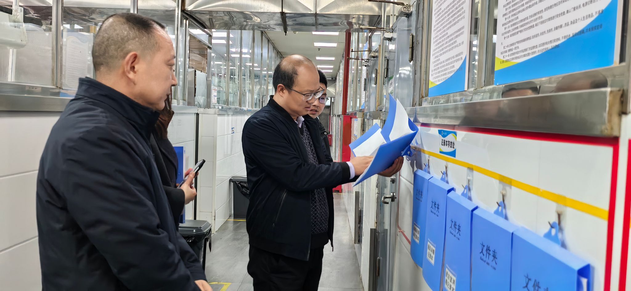 检查组查看了一餐厅后厨洗消间、粗加工间、肉食加工间、主食加工间等关键功能区,仔细检查了设备运行、卫生消杀、食材存放等环节。现场查阅了安全巡查台账、安全管理制度及员工培训等档案资料。