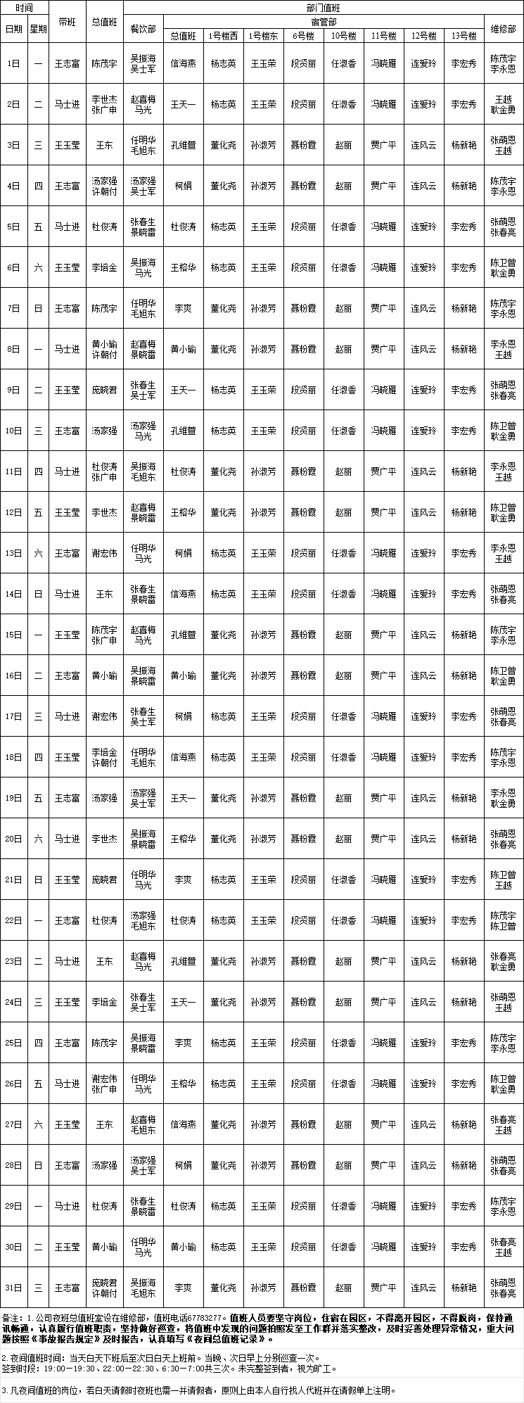 荷园项目公司2025年12月份夜间值班表
